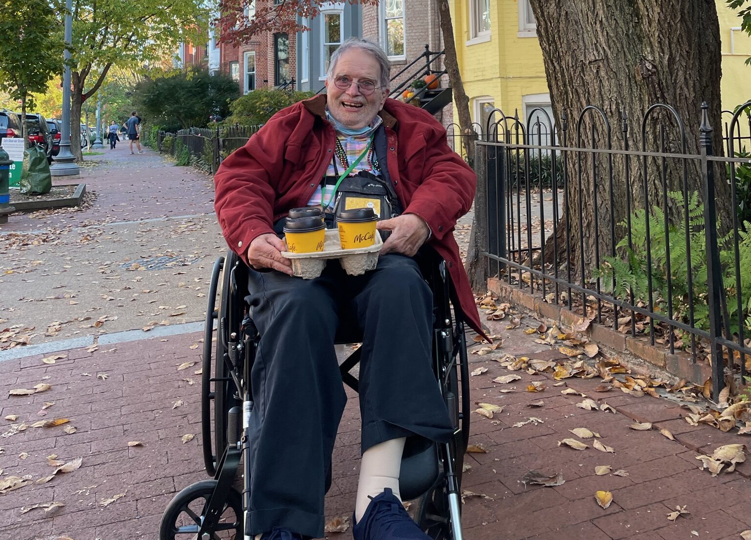 Michael helped to welcome each and every person who came through the doors of Ontario House, teaching countless assistants lessons in how to be strong and loving and present, which Michael would say he learned from his mother, Margaret. Michael had the gift of bravery, coming back to relationships time and time again, even when it was hard. Michael was an integral member of the greater Adams Morgan community. Anyone who had the pleasure of accompanying Mike on his daily trip to McDonald’s got to witness how known he was in the neighborhood, and his incredible memory of each person’s family tree, how many grandkids, who was divorced, and who was engaged. As known as he was in the neighborhood, Michael was also a world traveler, and traveled to countless weddings, historical sites, and visits to friends and communities over the years.